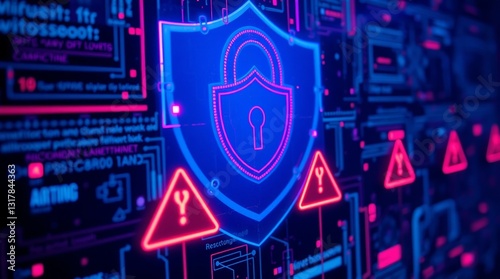 © Mila S, Obraz premium Generative AI. A glowing padlock symbol on a complex digital data network, representing cybersecurity.