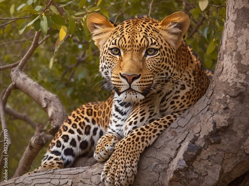 Obraz premium Generative Ai, African Leopard sitting in a tree
