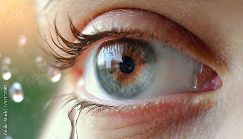 © bigfoot, Fototapeta premium 目から溢れる涙、クローズアップ,Generative AI AI画像
