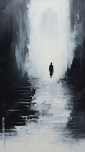 © beeboys, Obraz premium 階段と人のシルエット,Generative AI AI画像