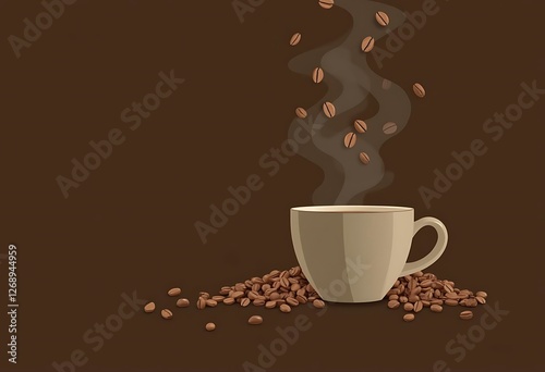 © Halim, Obraz premium Generative AI - Aromatic coffee cup with falling beans illustration