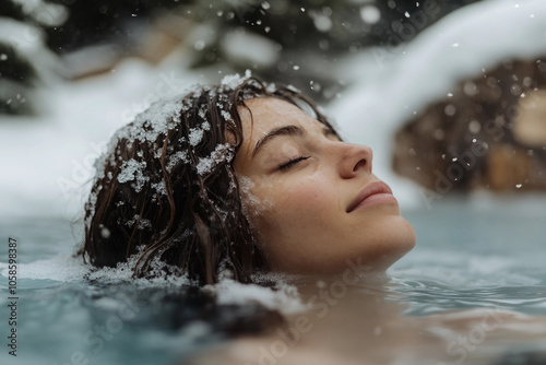 © Tetiana, Fototapeta premium Generative AI captures serene winter relaxation at a luxury resort spa