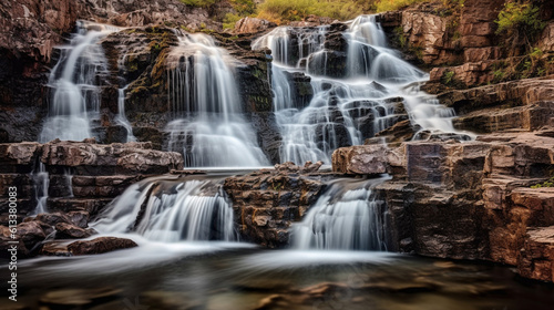 Fototapeta premium Generative AI, Cascading Symphony: Capturing the Graceful Flow of Waterfalls