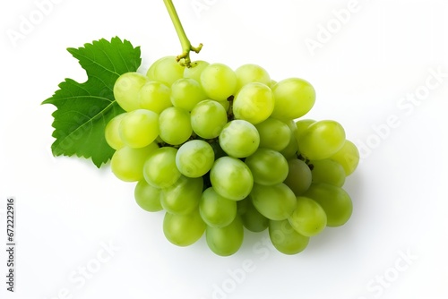 Fototapeta premium Generative AI : Close up image of Green wine grapes isolated on white...