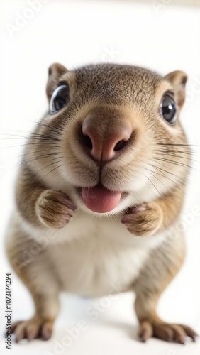 © 형근 최, Obraz premium Generative AI, close-up of a curious squirrel against white background