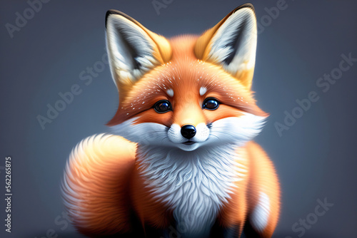 Fototapeta premium Generative AI: cute fox with a beautiful expression on a gray background