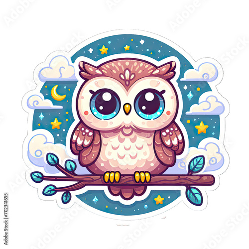 Fototapeta premium Generative AI Cute Little owl Sticker, cute baby owl sticker, cool little owl...