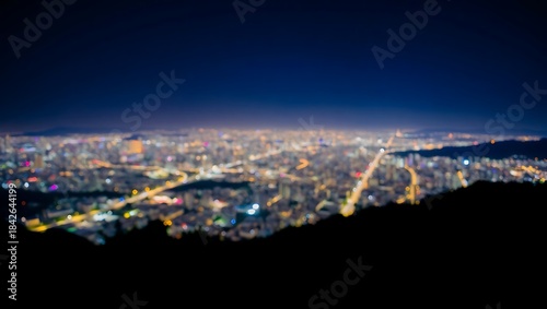 © Halim, Obraz premium Generative AI Depiction of a Bright Urban Nightscape View from a Mountain Overlooking a City with