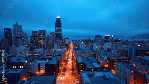 Obraz premium Generative AI, Dynamic Urban Skyline at Dusk