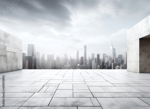 Fototapeta premium Generative AI empty, modern square and skyscrapers at a distance