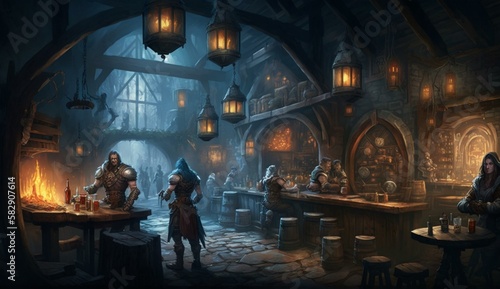 Fototapeta premium Generative AI, fantasy Tavern, medieval Tavern, medieval building, fantasy...