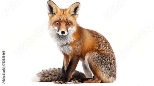 Fototapeta premium Generative AI : Front view of Red Fox, 1 year old, sitting in front of white background