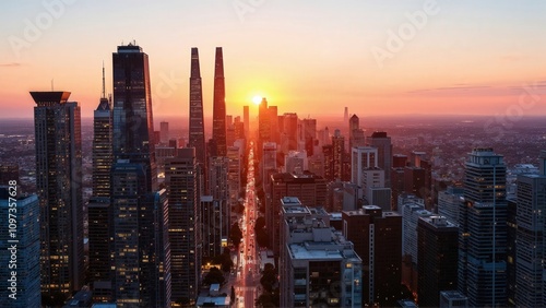 Fototapeta premium Generative AI, Golden Hour Skyline over a Modern Metropolis