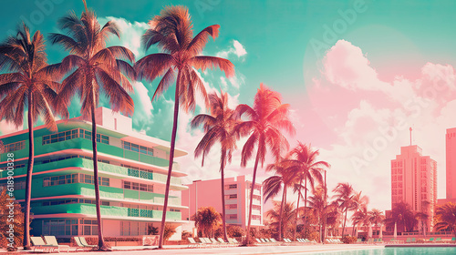 © Claudia Nass, Fototapeta premium generative ai illustration of a miami scenery in pastel colors