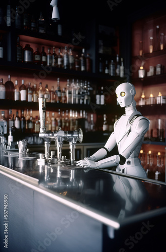 Obraz premium Generative AI illustration of artificial intelligence dressed as a bartender...