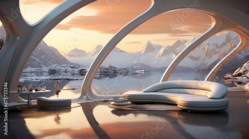 Fototapeta premium Generative ai illustration of Futuristic living room