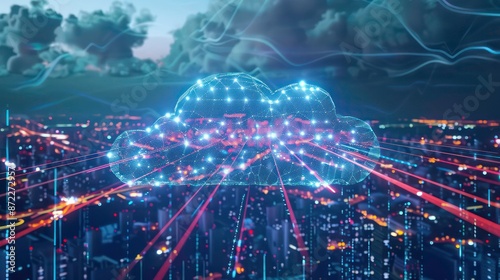 © florynstudio3, Obraz premium Generative AI image of cloud computing and digital data transfer with computing networked across cities country and globe with virtualization approach