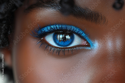 © Tetiana, Obraz premium Generative AI image of fashion model with glowing neon makeup showing futuristic beauty cosmetics and closeup visage trends in modern style