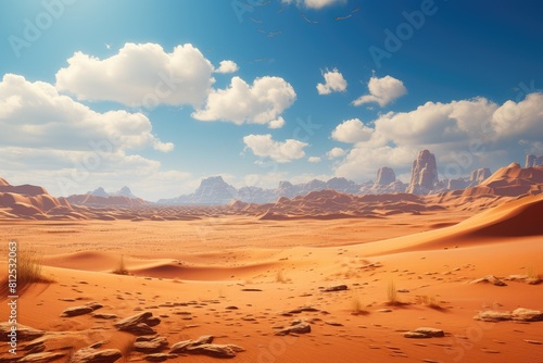 © Sci-Fi Agent, Naklejka premium Generative AI. Majestic Desert Landscape with Sand Dunes and Clear Blue Sky.
