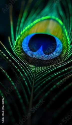 Naklejka premium Generative AI, Mesmerizing close-up of a peacock feather showcasing intricate...