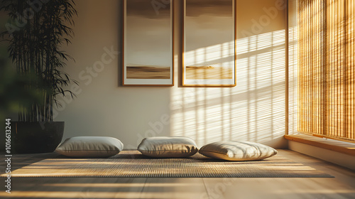 © 동민 이, Obraz premium Generative AI, Minimalist Meditation Room with Natural Light and Calm Decor