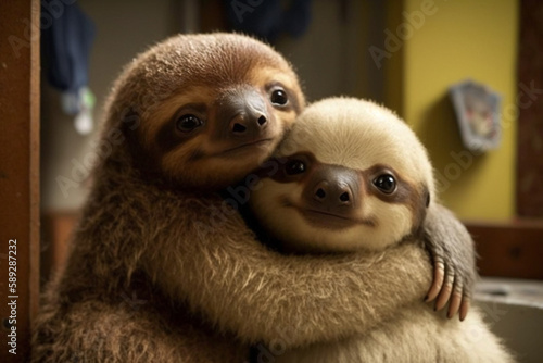 © belyaaa, Fototapeta premium Generative ai of cute sloths.