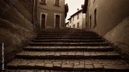 © 형근 최, Obraz premium generative ai, Old cobblestone street in sepia tone
