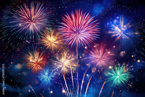 Fototapeta premium Generative ai on theme festive brightly fireworks on twilight background high...