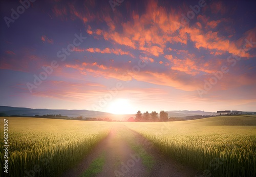 Obraz premium Generative AI,scenic view of agricultural field against sky during sunset