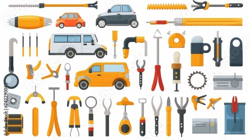 © vadosloginov, Fototapeta premium Generative AI Set of icons: set of auto mechanic tools white background