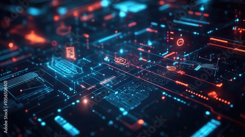 Fototapeta premium Generative AI solutions in a business setting, featuring icons for project...