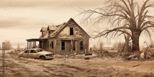 © Elena, Obraz premium Generative AI. Walk through the Dead City. post apocalypse 3d concept illustration