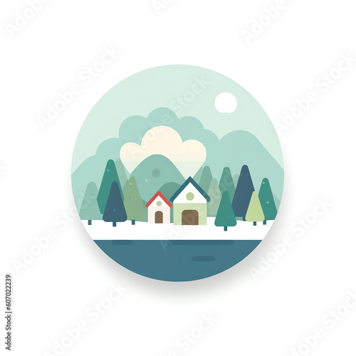 © Generative AI, Naklejka premium Generative AI Winter house with landscape. Cute vector illustration in flat style