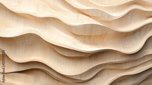 Obraz premium Generative AI wooden wave design with intricate patterns, beige warmth, and a...