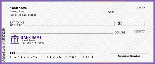 Obraz premium Generic Blank Bank Check Template: American Cheque Vector Design