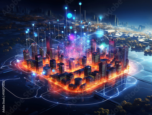 Fototapeta premium Generous Abstract technology lines background with Smart and futuristic city...