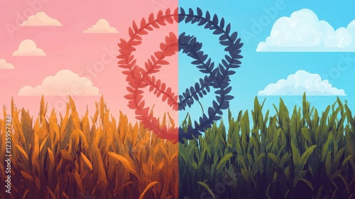 © Chantip, Obraz premium Genetic engineering flat design front view biotechnology revolution theme cartoon drawing Split-complementary color scheme.