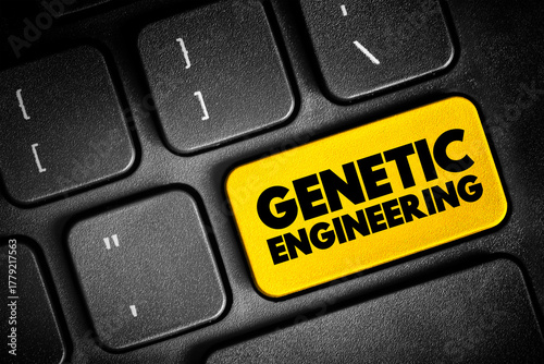 Naklejka premium Genetic Engineering - process that uses laboratory-based technologies to alter the DNA makeup of an organism, text button on keyboard, concept background