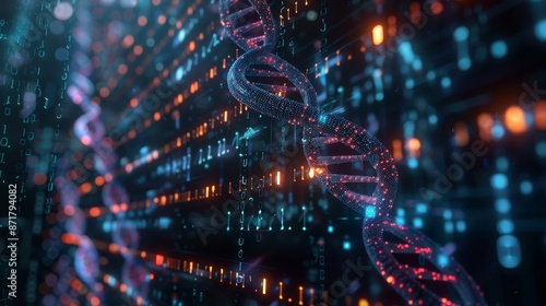 Fototapeta premium Genetic sequencing data visualized with AI and algorithms, hyper realistic,...