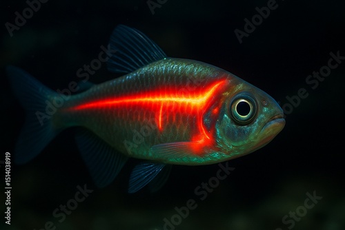 © Alice, Fototapeta premium Genetically modified fish with glowing red spine