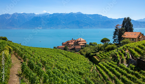 Fototapeta premium Geneva lake and alps mountain- Lavaux region in Switzerland (Leman lake)