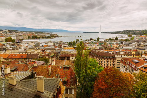 Fototapeta premium Geneva, Switzerland: city and lake view seen from St. Peter's Cathedral tower