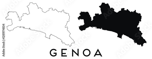 © Alex, Obraz premium Genoa city map with black border outline vector