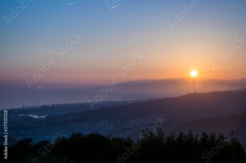 Fototapeta premium Genova from the hills at sunset