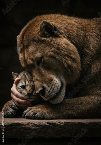 Naklejka premium Gentle, affectionate interaction providing comfort to a majestic wild animal...
