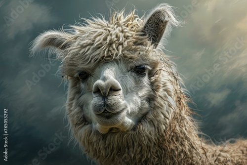 © anatolir, Fototapeta premium Gentle Alpaca domestic farm closeup. Farm animal. Generate Ai