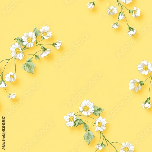 © Win Studio, Obraz premium Gentle Chamomile Flowers in a Delicate Arrangement on a Sunny Background Pattern Floral Design