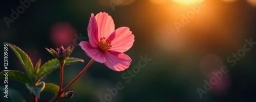 Obraz premium Gentle evening light falls on a delicate flower, dark colors, evening light,...