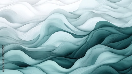 Fototapeta premium Gentle flowing waves in pastel mint and gray create a textured gradient...