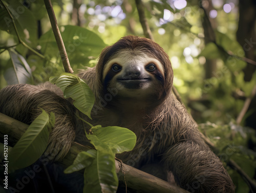 Fototapeta premium Gentle Giant Sloth in Rainforest Canopy, wildlife, Generative AI